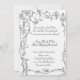 Ce charmant faire-part de mariage présente de délicates vignes à défilement en noir contre un arrière - plan blanc.