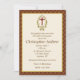 Invitation religieuse avec une frontière de traversée ornée et de marron décoratif. Peut être facilement customisé pour la Première Communion sainte, les Confirmations, le Baptême ou les invitations au baptême. Les invitations sont complétées par des enveloppes.