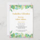 Une élégante invitation à la remise des diplômes sur le thème tropical, avec une bordure en haut et en bas de jolies fleurs et de la verdure avec une touche de confettis doré (numériquement crépi). Le dos a un large motif rayé dans la coordination des couleurs.