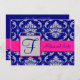 Invitation Fuchsia Navy Blue Silver Damask Enregistrer la dat