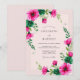 This romantic design features vibrant fuchsia watercolor cosmos blossoms and delicate emerald greenery. The hand-painted blooms are arranged elegantly against a soft pastel pink backdrop. Perfect for an airy spring or summer event, the artwork evokes a sense of whimsical beauty and natural charm.