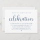 Carte d'invitation de fuite de mariage sur le thème du script bleu marine moderne (célébration de bonheur éternel). Elle est parfaite pour votre réception de fuite de mariage / fête de célébration post-mariage. Ajoutez vos détails dans une police / lettrage noir assorti.