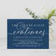 Thème calligraphique simple minimaliste romantique moderne, carte d'invitation de fête de fuite de mariage en script bleu marine (La célébration continue). C'est parfait pour votre annonce de fuite de mariage et la célébration de la fête, après votre meilleur jour. Ajoutez vos détails dans une police / lettrage noir assorti.