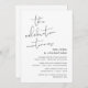 Ceci est la carte d'invitation de fête de mariage en fuite, avec un design de script minimaliste / minimalisme (La célébration continue)