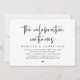 Carte d'invitation de fuite de mariage sur le thème du script noir moderne (la célébration continue). Elle est parfaite pour votre réception de fuite de mariage / fête de célébration après le mariage. Ajoutez vos détails dans une police / lettrage noir assorti.