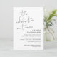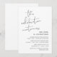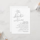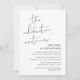 Ceci est la carte d'invitation de la fête de mariage en fuite, avec un design de script minimaliste (La fête continue)