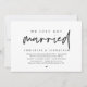 Carte d'invitation de mariage minimaliste moderne à thème script (nous venons de nous marier). Elle est parfaite pour votre réception de mariage / fête de célébration après le mariage. Ajoutez vos détails dans une police / lettrage noir assorti.