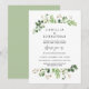 Carte d'invitation de mariage sur le thème de la verdure estivale moderne. C'est parfait pour votre réception de mariage / fête de célébration post-mariage. Ajoutez vos détails dans une police / lettrage noir assorti.