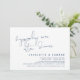Ceci est la carte d'invitation de la fête de fuite de noces, avec un design de script minimaliste / minimaliste Bleu Nuit (Invitation au dîner de bonheur éternel).