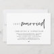 Carte d'invitation de mariage minimaliste moderne sur le thème du script, parfaite pour votre réception de mariage après une fuite de noces ou pour une fête de célébration post-mariage. Ajoutez vos détails avec une police / lettrage noir assorti.