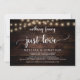 Belle fête de célébration d'amour rien de fantaisiste, Carte d'annonce / invitation de fuite en mariage, dans une conception de lumières de corde de ferme rustique en bois. C'est parfait pour votre réception de mariage et votre fête de célébration post-mariage. Ajoutez vos détails dans la même police / lettrage.