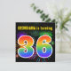 Ce design amusant et dynamique d'invitation de fête d'anniversaire comprend un feu d'artifice coloré inspiré motif, ainsi que le numéro "36" avec un arc-en-ciel multicolore comme spectre ou motif dégradé. Le nom sur le devant peut être customisé. Le verso présente des informations personnalisables sur la fête. Des invitations à des fêtes d’anniversaire comme celle-ci pourraient être envoyées à des invités potentiels pour une fête d’anniversaire organisée pour célébrer le trente-sixième anniversaire de quelqu’un. [~Z0000337]