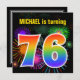 Ce design amusant et dynamique d'invitation de fête d'anniversaire comprend un feu d'artifice coloré inspiré motif, ainsi que le numéro "76" avec un spectre multicolore inspiré arc-en-ciel ou motif dégradé. Le nom sur le devant peut être customisé. Le verso contient des informations personnalisées sur la fête. Des invitations à des fêtes d’anniversaire comme celle-ci pourraient être envoyées à des invités potentiels pour une fête d’anniversaire organisée pour célébrer le soixante-seizième anniversaire de quelqu’un. [~Z0000337]