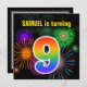 Invitation Fun Fireworks + Rainbow Motif "9" Anniversaire #