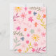 Pleins de fleurs et d'amour pour bébé, nos invitations à la main sont la meilleure façon d'annoncer votre paquet de joie ! Avec des lettres peintes à la main Baby en fleur fait de feuilles, fleurs, soleil, avec de mignonnes petites fleurs de jardin lunaire et couleurs vives arc-en-ciel rose, bleu, jaune orange sur arrière - plan rose pastel clair, une explosion de joie pour l'arrivée du petit