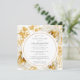 Élégante invitation à la célébration de la vie présente une rose blanche botanique moderne et un cadre rond fleuri or. Le nom de la personne décédée est écrit dans un texte traditionnel. Tout le texte peut être facilement édité pour créer un souvenir personnel.