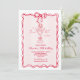 Célébrez dans le style avec ce design féminin et ludique à coquette, avec un verre à martini avec talons hauts, des rayures roses douces et une bordure d'arc rouge dessinée à la main. Parfait pour les anniversaires jalons ou toute occasion de glamour girly, cette disposition élégante donne le ton d'une nuit à retenir. L'illustration de cocktail vintage et les fontes de dainty lui confèrent une esthétique intemporelle avec une touche flirtante. Personnalisez le nom, la date et l'emplacement pour correspondre à votre événement. Un choix rêveur pour tous ceux qui aiment un peu étincelant et sass.