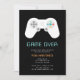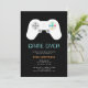 Invitation à thème de jeu amusant pour les enterrements de vie de garçon ou les week-ends d'enterrement de vie de garçon avec une manette de jeu avec "game over" et les détails de votre fête dans un lettrage numérique rétro.