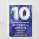 Garçon bleu blanc 10e anniversaire invitation garçons 10 anniversaire invitation pour un garçon bleu violet avec écriture de script moderne et des ballons amusants en feuille d'aluminium.