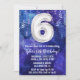 Garçon bleu blanc 6e anniversaire invitation garçons 6 anniversaire invitation pour un garçon bleu violet avec écriture de script moderne et des ballons de papier amusant.