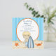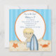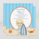 Anniversaire d'été ? ? ? Ouais ! ! Commencez votre célébration outre de la droite avec cet invitation adorable de scène de plage. Si c'est une partie sur la plage ou juste un thème de plage il est parfait pour vous. Il y a sable le long du fond avec un crabe et une étoile de mer oranges dans elle. Un garçon avec les cheveux blonds se tient dans le sable tenant un panneau de surf rayé foncé et bleu-clair. Il y a un grand ovale blanc au centre décrit dans l'orange. Il y a un arrière - plan bleu avec des rayures bleues plus foncées. Vérifiez nos beaucoup de d'autres conceptions et produits dans cette ligne.