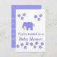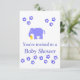 Un éléphant de bleus layette, tenant son nounours. Les cartes personnalisables de RSVP, ajoutent des détails avant la commande. Les produits assortis disponibles incluent + les annonces de naissance, et vous remercient carde, des hauts de forme de gâteau chez zazzle.com/artistjandavies,