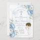 Garçon Priant Première Communion Sainte Dusty Blue Floral Invitation Primera Comunión