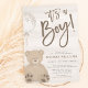 Cette invitation à baby shower en peluche de garçon mignonne présente une illustration d'ours en peluche doux tenant un ballon et portant une cravate d'arc. L'arrière - plan d'aquarelle bronzée a l'air super avec la police de script de calligraphie moderne. Utilisez les champs modèle en ligne pour personnaliser cet invitation unique. Contactez le concepteur si vous avez besoin d'aide pour ajouter vos informations.