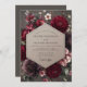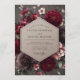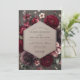 This design features a moody and romantic floral arrangement. Sumptuous dahlias and peonies in shades of deep garnet and burgundy bloom against a dark, dramatic background. Touches of blush pink and ivory add softness to the opulent, painterly composition, creating a vintage and sophisticated atmosphere.
