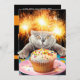 Invitation Gâteau Cupcake avec Chat et Feu d'Artifice
