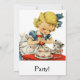 Petite fille et le gâteau - Une carte d'anniversaire rétro des années 50 avec une petite fille décorant un gâteau avec son petit chat.