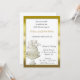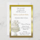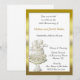 Carton d'invitation adapté aux anniversaires, aux fêtes prénatales ou aux fêtes de fiançailles. La conception présente un gâteau blanc et or avec un nœud et des cœurs et un cadre doré. Les invitations sont fournies avec des enveloppes et un choix de papier.