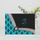 Magnifique bleu d'aqua avec un damas noir sur un arrière - plan noir. Un losange incurvé comme une bordure en gemme avec une coupe florale noir et diamant comme un embellissement.