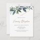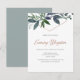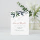 Ce faire-part de mariage tendance et élégant de réception du soir présente une forme géométrique en or faux rose entourée de magnifiques branches vertes, avec une typographie stylisée en or faux rose.