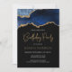 Cette invitation à l'anniversaire branchée présente une aquarelle d'une géode d'agate dans les tons bleu marine, moyen et bleu clair, avec des reflets d'or. Les mots "fête d'anniversaire" apparaissent dans la parties scintillant en faux or dans la police décorative moderne d'écriture manuscrite. Customisez-le avec le nom de l'honoré en or art déco police et les détails de la fête en blanc sans serif type. La même image d'agate bleue s'affiche à l'envers.