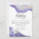 Invitation de fête d'anniversaire | Moderne Amethyst Watercolor Geode by the WhimsicalArtwork™ - Illustration d'aquarelle moderne peinte à la main dans les tons violet et violet avec des reflets or a l'apparence d'un geode Amethyst gem - Une combinaison de calligraphie de script combinée à une disposition de texte minimaliste de style contemporain en fait une invitation tendance de fête d'anniversaire. Il fait également partie d'une collection de papeterie mariage avec accessoires mariages assortis.