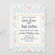 Invitation géométrique Abstraite, bleue, rose et blanc cassé