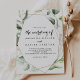 Cette élégante verdure dorée géométrique, le mariage de l'invitation, est parfaite pour un mariage élégant. Le design est orné de feuilles d'eucalyptus verts peints à la main et ornés d'un cadre géométrique doré.