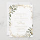 Cette verdure dorée géométrique se trouve à l'avant et à l'arrière du faire-part de mariage, idéal pour un mariage rustique. Le design se compose d'un magnifique cadre géométrique doré avec d'élégants feuilles verts. Enregistrez du papier en incluant plus de détails au verso de l'invitation plutôt que sur une carte de boîtier séparée.