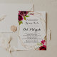 Cette invitation à la bat mitzvah aux rougeurs bordeaux et dorés géométriques est parfaite pour un bat mitzvah simple. Le design est composé de fleurs roses, rousses, bordeaux et bordeaux à aquarelle vert, ornées d'un cadre géométrique doré.