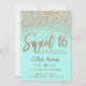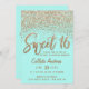 Invitation Girly Aqua Turquoise or parsemé Parties scintillan
