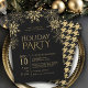 Flammes de neige parties scintillant or contre un arrière - plan noir sur le devant rencontre la parties scintillant dorée houndstooth sur le dos pour un Noël festif et élégant ou invitation de fête de vacances. Tout le texte est modifiable selon vos besoins en cliquant sur "personnaliser ce modèle". Découvrez le reste de la collection d’EmmyINK pour une véritable version en feuille d’or du même invitation, ainsi que la coordination des fournitures et de la décoration de la fête !