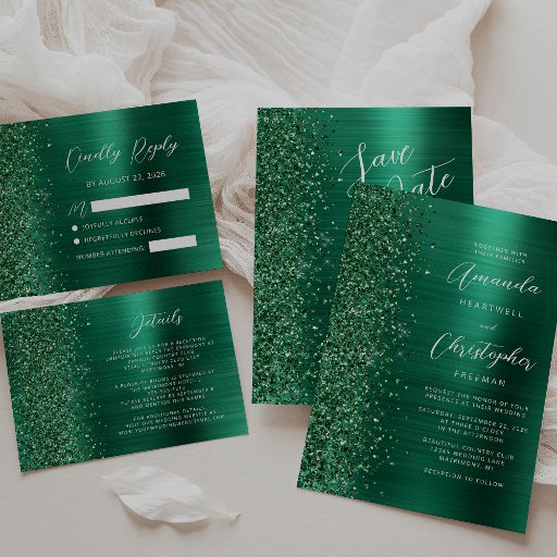 Glam Brushed Metal Glitter Emerald Green WeddingConçu par Akhates Designs