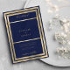 Une élégante élégance chic or et bleu marine monogramme initie des invitations de mariage minimalistes et géométriques.