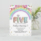 Invitation Glitter FIVE Girly Rainbow Sequin 5th Birthday