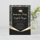 Gold glitter graduation cap and confetti on a glitter blue leopard print background.