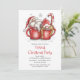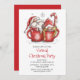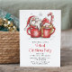 Gnome Virtual Christmas Party Quarantine Online Holiday Invitation présente une aquarelle illustrant des tasses à café avec le Père Noël et Mme Claus, des sucres de canne et des flocons de neige en rouge festif sur un arrière - plan blanc. Ajoutez vos informations personnalisées en modifiant le texte dans les zones de texte fournies pour vos Invitations de Fêtes de Noël Virtuelles.