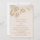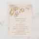 This wedding invitation showcases a minimalist and refined aesthetic, featuring soft, neutral tones and an ethereal botanical design. At the top, delicate, three dimensional floral elements in beige and gold hues gracefully drape across the page, creating a serene and organic feel. The overall color palette is warm and understated, complementing the elegant typography. The names of the couple are highlighted with a subtle contrast of fonts, using a graceful handwritten script for a touch of romance. Perfect for a modern, nature-inspired celebration, this invitation conveys understated elegance and timeless beauty.With your photo and a scannable qr code for your wedding website on the backside.