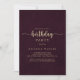 Cette invitation de fête d'anniversaire en calligraphie bordeaux or est parfaite pour un événement rustique. Le design sobre et élégant présente une typographie de script classique et sophistiquée dans un arrière - plan marron.