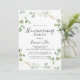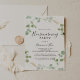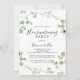 Cette invitation à la fête de l'eucalyptus confetti en or est parfaite pour un événement moderne. Le design comprend un feuillage vert d'eucalyptus aquarelle avec des confettis d'or.